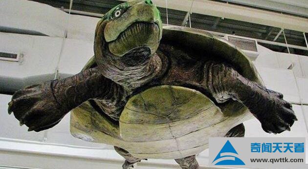 这种上古龟的头有足球那么大,身子比小汽车还大一圈,尖利的喙和厚重的脚爪都是捕食利器。